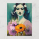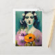 Kvinna- och vallmoblommor vykort
