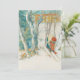 Kvinnor i fågeln träd som sätter på hennes crossa country skis. Vintage bra konst vattencolor av svensk målare Carl Larsson.