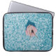 Kvinna på rosa boj omgiven av vatten i laptop fodral