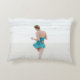 Kvinna på stranden nära stranden prydnadskudde