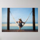 Kvinna Sitta på en hammock på ett litet hotell Poster