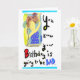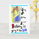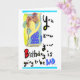 Humoristisk födelsedagskort som visar en kvinnlig representant som föner sitt hår.
