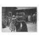 Kvinna som matar björnar med en grupp människor som är främre av en kabin. Fotografera vid Charles Belden av Meeteetse, Wyoming.