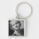 Kvinna som poserar 2 fyrkantig silverfärgad nyckelring