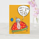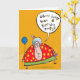 Äldre Womans talesman med födelsedagshatt och ballong frågar: "Vad är bättre än en party? Det här kortet."