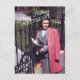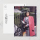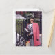 En vacker kvinna från 1946 som står utanför i en röd kappa vykort.