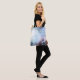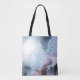 Kvinnans huvudsilhuett och bönning av händer tygkasse