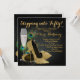 Eleganta, färgglada påfågelfjädrar, guld champagne och guld glitter högklackad sko som träder in i 50-års födelsedagsfest inbjudan. Du kan enkelt anpassa denna vackra kvinnas påfågel födelsedagsfest inbjudan genom att lägga till dina detaljer i teckensnittsstil och färg, formulering och layout som du önskar.