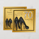 Vacker svart och guld högklackad sko överraskning 70-årsfest inbjudan. Denna eleganta svarta och guldfärgade överrasknings inbjudan till 70-årsfest är lätt att anpassa för ditt evenemang.