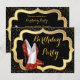 Vackra röda högklackade skor, svart och guld glitter födelsedagsfest inbjudan. Denna eleganta röda, svarta och gyllene födelsedagsinbjudan är lätt att anpassa för ditt evenemang.