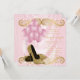 Kvinnlig rosa och guldglamorös födelsedagsfestinbjudan med vackra gnistrande högklackade skor i guld, rosa ballonger, champagne och pärlor på en glamourös och lyxig rosa satinbakgrund. Denna eleganta rosa och gula födelsedagsinbjudan kan enkelt anpassas för ditt evenemang genom att helt enkelt lägga till dina uppgifter i den typsnittsstil och färg, formulering och layout du väljer. Du kan också flytta eller ta bort krullorna, champagne, ballonger och satinbakgrund. Detta är en tryckt design med ingen riktig satin, juveler, pärlor, glitter etc.