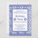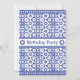 Eleganta födelsedagsinbjudningar - lätta att anpassa. Blå och vit traditionell blomster schackbrädemönster.