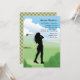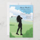 Invitera av vänner till utslagsplatsen med denna härliga golf-themed inbjudan. Den är perfekt för ett kvinnligt, golf-entusiast födelsedagfirande. Den presenterar ett långhårigt, kvinnligt, silhouetten på grönten med en golfklubb i henne händer under en blå himmel med billowy, vitmoln. Kortet är lätt att skräddarsy med ditt uttrycka, stilsort, stilsortsfärg och primat av sex pappra typer.