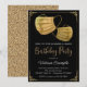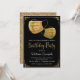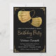 Kvinnlig maskerad-födelsedagsfest-inbjudan med vackra gyllene glittermasker på en svart och gyllene bakgrund. Denna covid-födelsedagsinbjudan kan enkelt anpassas för ditt evenemang genom att bara lägga till dina uppgifter. Du kan också ändra bakgrundsfärgen.