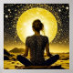 Söt celestial ai-konst som skildrar en kvinnlig meditation under en fullt måne omgiven av stjärnor.