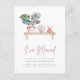 Jag har flyttat - ny hem-annonskort med en akvarellillustration av en hylla med ett ljus, diffusor och en krukväxt.