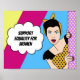 Stödja jämställdheten för kvinnor med detta söta, färgstarka vykort för popkonst. En rektor kvinna står bredvid det feministiska citat som uppmanar människor att rösta för kvinnors höger. Roligt färg och vintage tecknad för en otäckt kvinna.