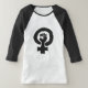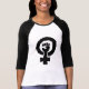 Det universella kvinnliga symbolet kombinerade med solidaritet räcker i svart text på vittshirten