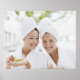 Kvinnor i badrockar som dricker te i spa poster