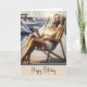 Kvinna sitta på en strandstol med margaritadryck på födelsedagen. All text kan redigeras.