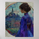 En kvinna klädd i blått på portalen till stadens fantasi AI-konst