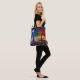 Kvinnor i blomstrande gäss som går i färgad skog tygkasse