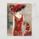 Kvinnor i en röd klädkollage vykort