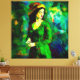 En AI-genererad målning av en kvinna i en grönt klänning och hatt