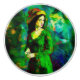 En AI-genererad målning av en kvinna i en grönt klänning och hatt