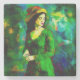 En AI-genererad målning av en kvinna i en grönt klänning och hatt
