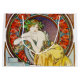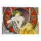 Alphonse Mucha (24 juli 1860-14 juli 1939) var en tjeckisk målare, illustratör och grafisk konstnär som bodde i Paris under Art nouveau-perioden och var bäst känd för sina distinkta stiliserade och dekorativa teaterala poster, särskilt de som tillhör Sarah Bernhardt. Han tog fram illustrationer, annonser, dekorativa paneler och formgivningar, som blev ett av periodens mest kända bilder. Under den andra delen av sin karriär, vid 43 års ålder, återvände han till sitt hemland Bohemia-Moravia-regionen i Österrike och ägnade sig åt att måla en serie av 20 monumentala canvaser, kända som "Slav Epic", som skildrade världshistorien för alla slaviska folk, som han målade upp mellan 1912 och 1926. 1928, på tioårsdagen av Tjeckoslovakiens självständighet, presenterade han serien för den tjeckiska nationen. Han ansåg att det var hans viktigaste arbete. Den är nu på visning i Prag. citat:Wikipedia
