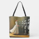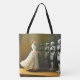 Den här väskan har en kvinna och robotar som visas på den.
