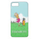 En kvinna går in i en tvist när han spelar golf. Version som du kan anpassa med ägarens namn. Telefonfodral för en kvinnlig golfspelare, en kvinnlig golfspelare eller dam golfer.
