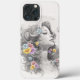Det här är ett vackert iphone case som visar en kvinnas ansikte profil i muterade toner och färgad blommor i hennes hår. Konstruktionen har en mycket lätt texturerad övertäckning som ge fodral och utformar en lätt texturerad effekt och vintage.