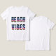 Kvinnans t-shirt visas i vitt med en söt strandvibskrift. Anpassa det här objektet eller köp som det är.
