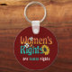 Pro Choice-nyckelkedjan har stil som "Kvinnors höger är humana höger" med daisy- och solrosgrafik i blommigt på mörkens röda bakgrund.