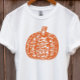 Vit T-shirt med fet orange-pumpor för kvinnor och flickor, med anpassade baktext.