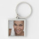 Kvinnoskrubbning i ansikte med trasa fyrkantig silverfärgad nyckelring