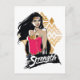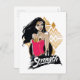 Kolla in kvinnor framför hennes logotyp mönster med "Styrka" skriven på ett målat penseldrag.