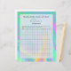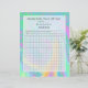 Det här är en sida som du kan lägga in i en binder där du listar alla dina räkningar för månaden. Detta är ett bra sätt att behålla upp dina räkningar så att du kan komma ihåg när du betalar dem. Har en färglös bakgrund för pastelldesign med en halvgenomskinlig vit ruta på den och sedan det månatliga faktureringsdiagrammet. Anpassa med ditt efternamn eller spelar ingen roll som du väljer att placera i ställe. Matchar de andra färgfulla pastelldesignprodukter som finns i det här lagret. Slå hål längs kant, eller så kan du glida ner dem i tydliga skyddande sleever.