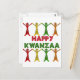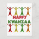 Fyra dansare i rött, blått, grönt och gult dansar mellan ord "Lycklig Kwanzaa" för att bidra till att fira känslan av gemenskap, familj och nystart nästa år.