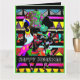Gratulera till Kwanzaas glada själ med detta pulserande och festliga hälsningskort. Med en stark, färgstark silhuett och en god harmoni i dansen fångar denna design det afrikanska amerikanska arvets innersta väsen och Kwanzas återupplyftande traditioner. Perfekt för att sprida glädje och fira enighet, självbestämmande och gemenskap under julhelgen.