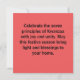 Kwanzaa med citat på Back Helgdag Card Kwanzaa är ett årligt firande av afrikansk-amerikansk kultur från den 26 december till den 1 januari, vilket kulminerar i en kommunal högtid vid namn Karamu, vanligtvis på den sjätte dagen. Det skapades av aktivisten Maulana Karenga, som byggde på afrikanska festivaltraditioner från olika delar av Väster och sydöstra Afrikan