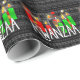 Vackra Kinara med tända ljus, en svart, tre gröntar, tre rött svart med afrikanska dansare mot en svart och grått-stamkulturell bakgrund. Lägg till matchande märkre för menyfliksområde och presenter för en perfekt som grupperar den här säsongen. Den här presentfigursättningen koordinerar med "Days of Kwanzaa"-samlingen uteslutande designad av SalonOfArt.com.