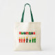 En naturlig färg-totepåse med mörk grönt handtag och en kwanzaformgivning med rött ljus, svart ljus och grönt, från en handmålad papper kollage av Judy Adamson.