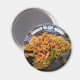 För svampjägaren! Dekorativ, rund magnet för hemmet eller kontoret som innehåller fotobilden av ett champrum i Chicken-i-Skogen, en ätbar svampart. Markera din magnet-storlek.
