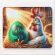 En kyckling sitter i en rustik lada som vaktar ett glänsande ägg av grönt med ett stort dollartecken