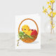 En riktigt söt design för påsk är denna med en vacker gul kyckling som sitter i en korg med ägg. Denna design kommer att få dig att le, den är bara så full av påsksöthet. Denna kyckling och ägg i korg-design ser bra ut på dessa notkort