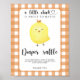 "En liten kyckling är på väg." Fira med den här tecknaden, kyckling, temat babydusch party! Söt chick med baby ansikte. Orangens bur.