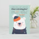 Brr! Frosty chic bjuder in för barn höstfödelsedag på en vit polar som är klädd i en söt vinterhatt och svettare. "Kom Chill out with us" visas överst i marinblå text, med dina party-uppgifter under i en coola blandning av marintypsnitt och orange.
